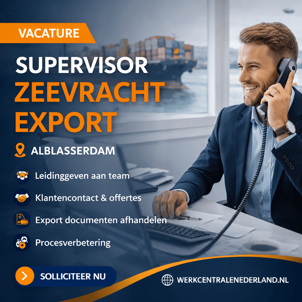 Looking for a new challenge? We need a Sea Freight Export Supervisor in Alblasserdam for an international logistics company! In this role, you’ll lead the export team and ensure that sea freight shipments are handled smoothly and efficiently. You’ll be coaching your team, managing carrier contracts, and keeping in touch with clients. Plus, you'll get to work on improving processes and handling all the export paperwork.
